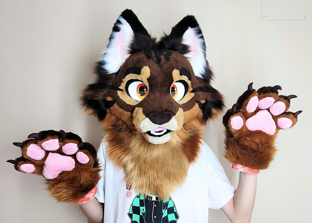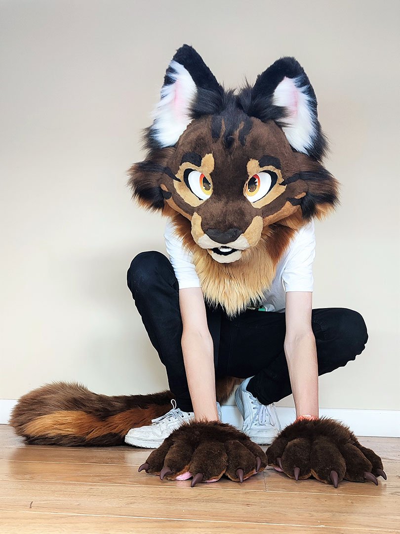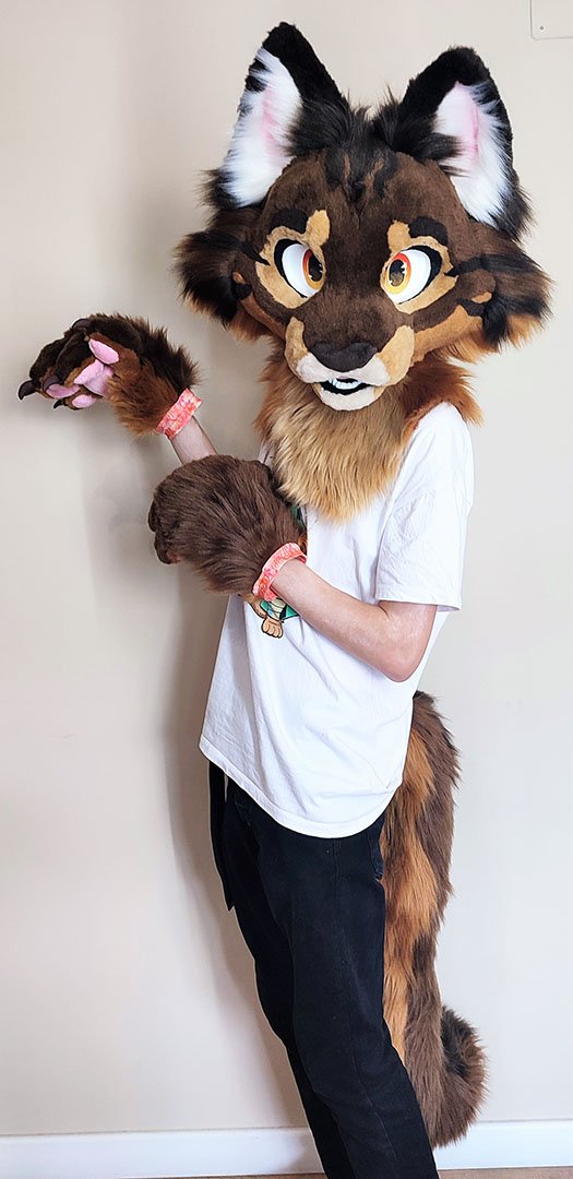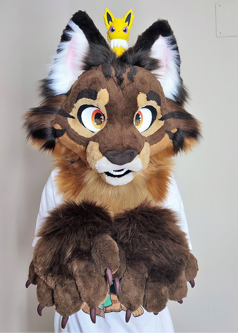 Head is modeled from scratch with foam, using as guide the feline patron from [url=https://twitter.com/Kloofsuits]KloofsuitsUK[/url]. Eyes are 3D printed in follow-me-eyes shape. Tongue uses pink minky and teeth are made with Fimo. Head is fully lined inside and has good vision.