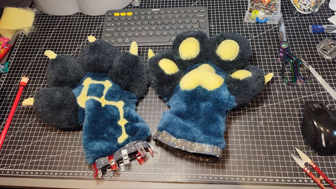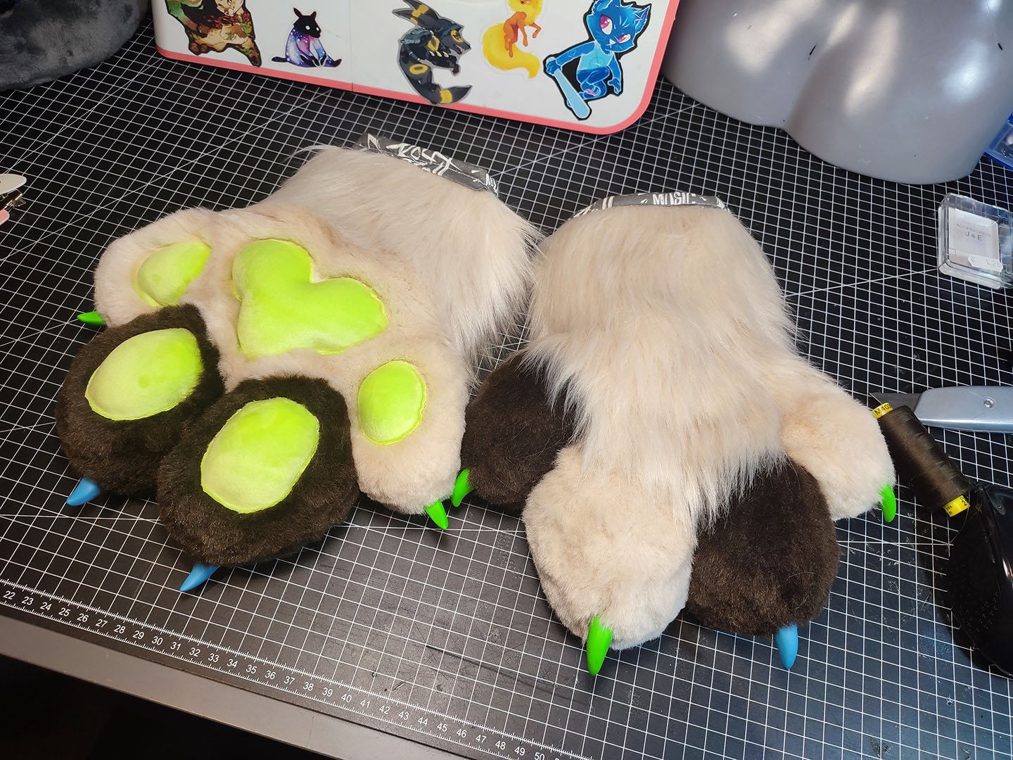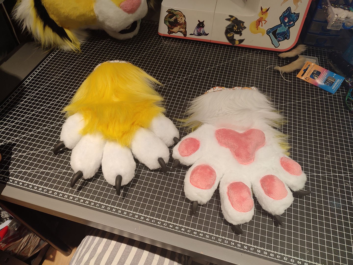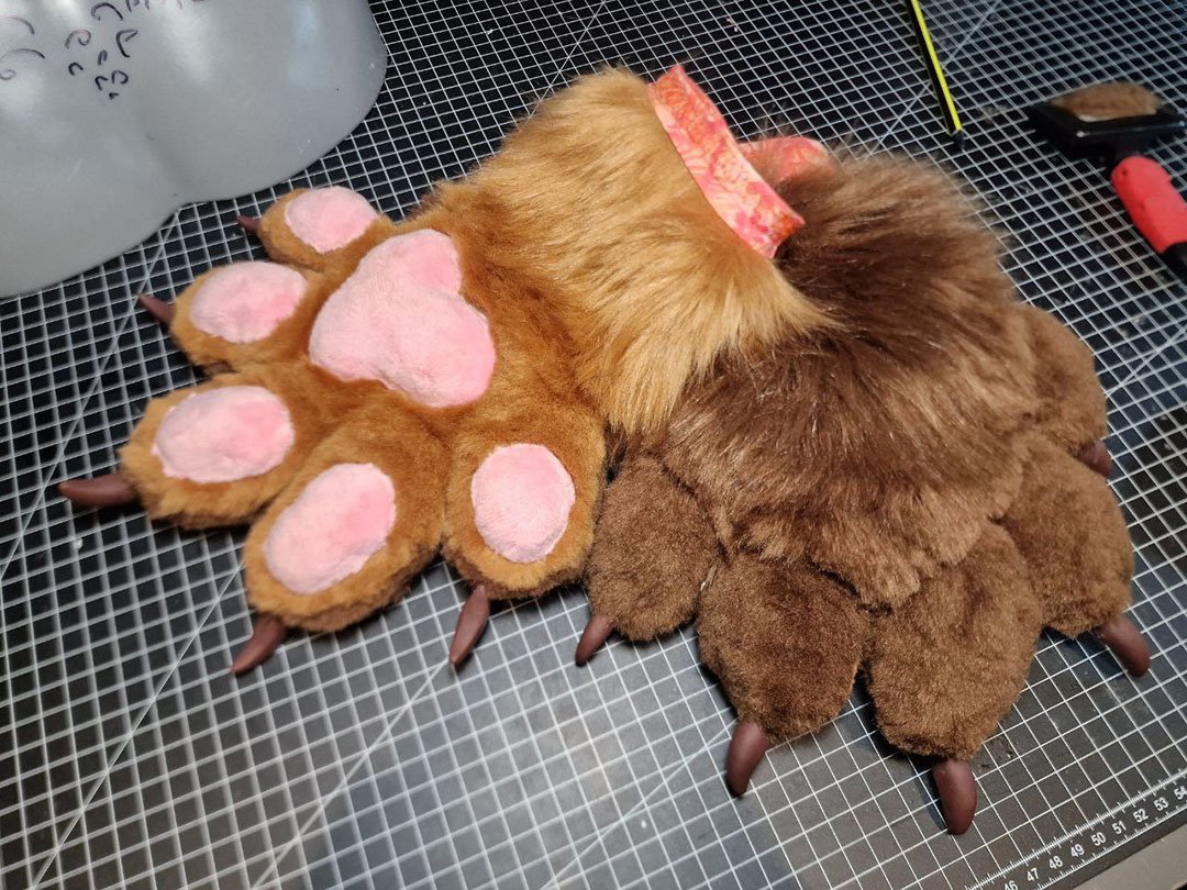 You also have the option of adding claws to the hands, we make them from two materials, hard (using modeled Fimo) or soft (sewn minky fabric).